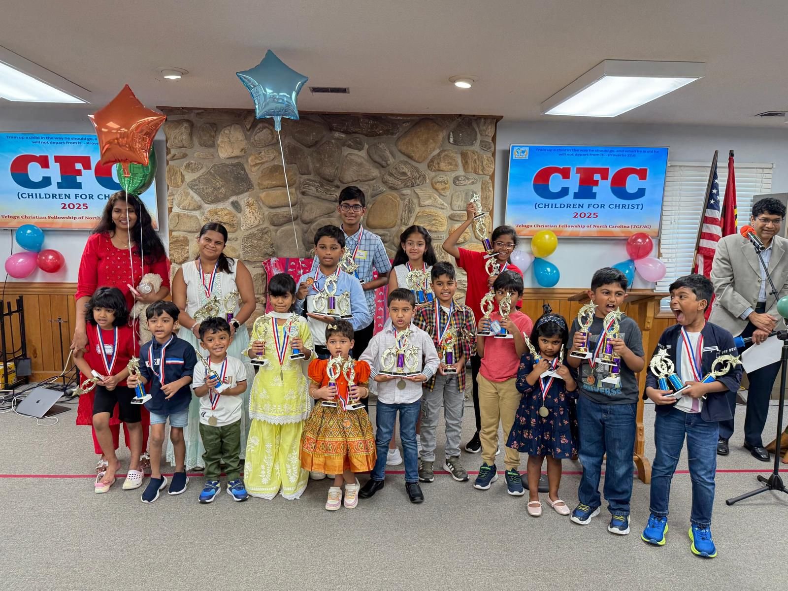 Telugu Christian Fellowship of North Carolina (TCFNC) is a group of Indian Christian families living in the state of North Carolina, USA. We aim to provide a place for worship, fellowship and spiritual growth for the Indian Christian families. We meet on 2nd Saturday of each month in a local church to praise, worship, sermons and followed by fellowship. We primarily praise and worship in our native language i.e Telugu, however we welcome other language speaking families to join us